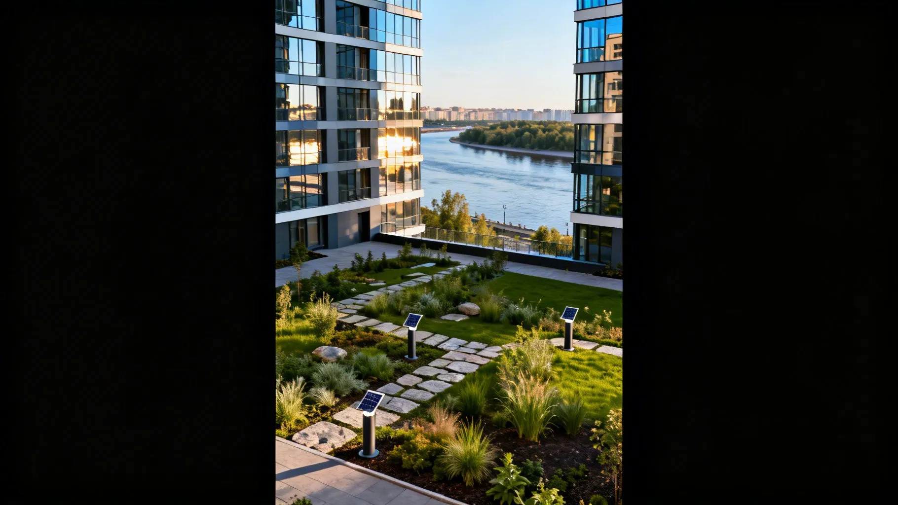 С точки зрения энергоэффективности, здесь применены решения, которые снижают теплопотери и затраты на кондиционирование летом. Большие остекленные фасады ориентированы оптимально по сторонам света, что позволяет максимально использовать естественное освещение и пассивное солнечное отопление зимой. Кровля покрыта материалом с высокой отражающей способностью, чтобы летом квартиры не перегревались.